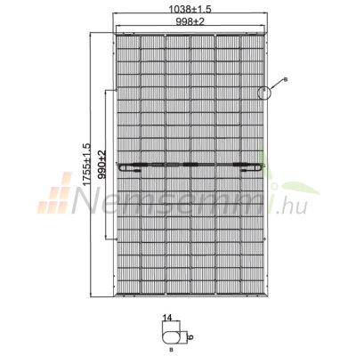 • Napelem 38V 415W X-HALF CUT nagyteljesítményű monokristályos 1722 x 1134 x 30 mm Multi Busbar technológia