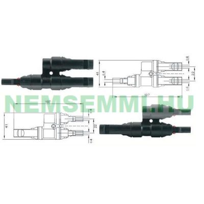 • Napelem ikercsatlakozó készlet MC4 , Y csatlakozó pár 1000V maximális feszültség és 30A maximális áramerősség.