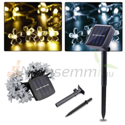 Napelemes fényfüzér 7 méter 50 db meleg fehér virág LED kültéri világítás vízálló dekoráció napelemes világítás