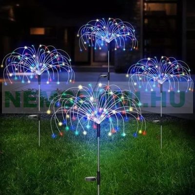 Napelemes földbe szúrható tüzijáték világítás 150LED hideg fehér vízálló karácsonyi dekoráció szolár csillagszóró fény