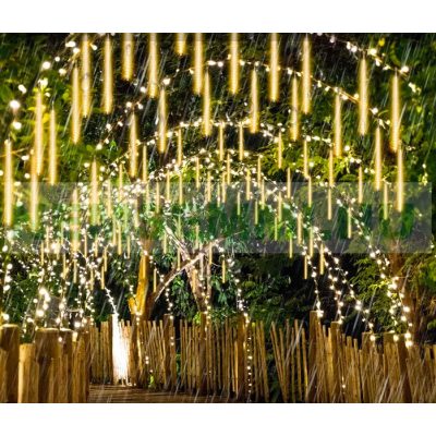 Napelemes meteor fényfüzér 50 cm LED meleg fehér kültéri világítás vízálló karácsonyi dekoráció napelemes meteorzápor fény