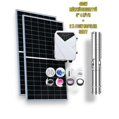 Napelemes öntöző szivattyú készlet 48V 400W búvárszivattyú 4 m³/h 50 méter emelés - 2 x 430W napelem - szolár szabályzó - öntözés mélykút szivattyúval és napenergiával!