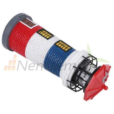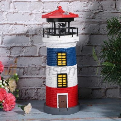 Napelemes világítótorony lámpa forgó világítással kerti dekoráció kék-fehér-piros csíkós