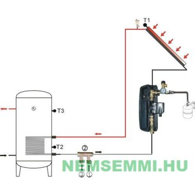 2 db tartály és 1 db kollektor hőszondával