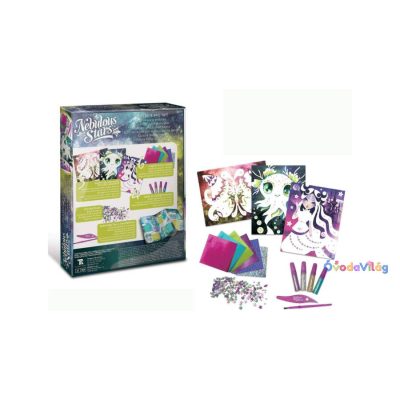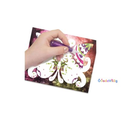Az előre kialakított képeket te magad tudod teljesen egyedivé varázsolni a csillogó lapokkal, csillámokkal és kövekkel.