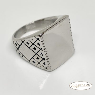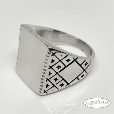 Nemes acél férfi pecsét gyűrű, ezüst színű, metszéssel díszítve!