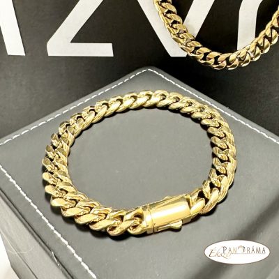 Nemesacél, szép kidolgozású, Arany színű karkötő magasfényű polírozással.