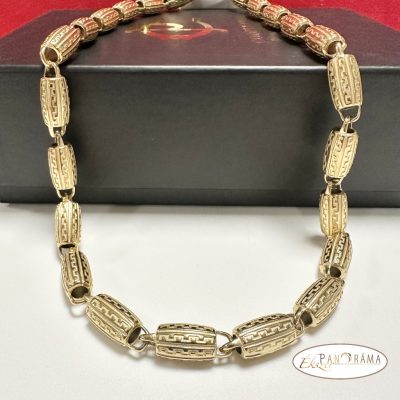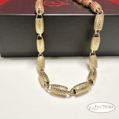 Nemesacél, aranyozott férfi barakka nyaklánc görög mintával.