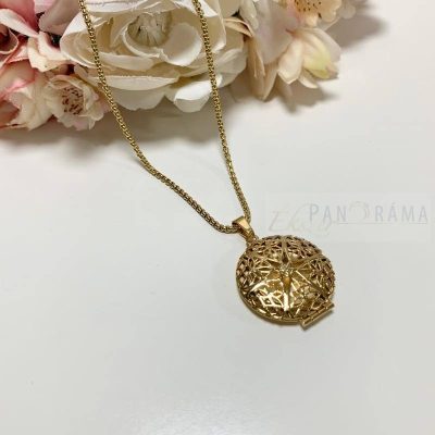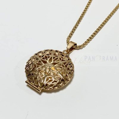Aranyozott nemesacél nyaklánc fényképtartó, vagy aromatartó medállal