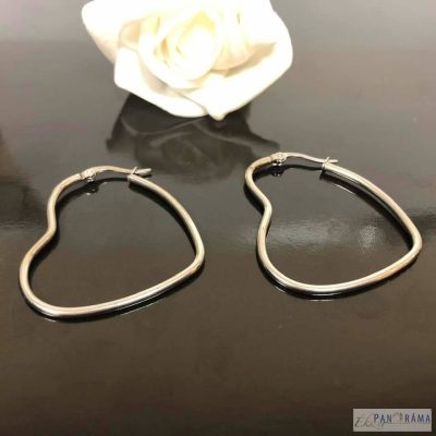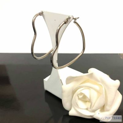 Különleges szív alakú, ezüst színű nemesacél fülbevaló.