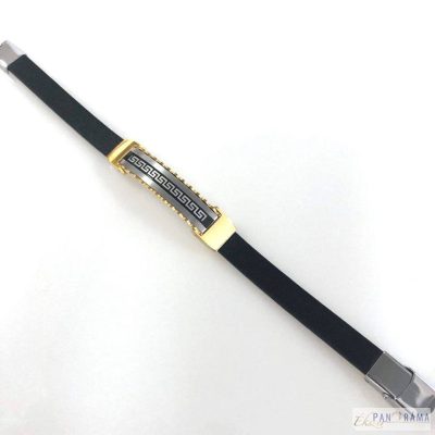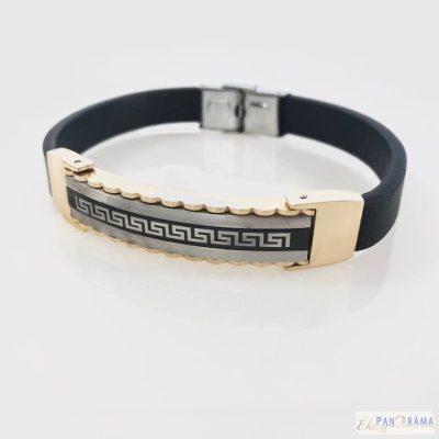 Rozsdamentes acéllal és fekete kaucsuk szíjjal kombinált férfi karkötő. Igazán fiatalos, férfias, sportos viselet.