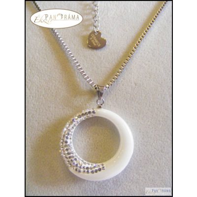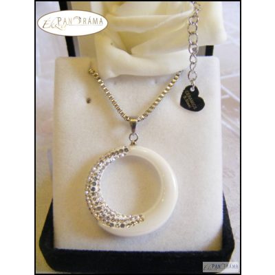 316L nemes acél nyakláncon fehér kerámia karika , amit apró csillogó kristályok díszítenek! Kiváló minőségű, finoman kidolgozott. Fiatalos, ajándéknak is gyönyörű, igényes darab!