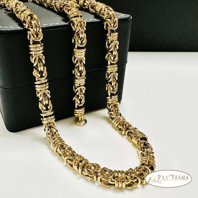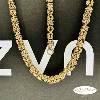Nemesacél szett. Kerek szemes, bizánci stílusú királylánc karkötővel. Arany színű, magasfényű polírozással.