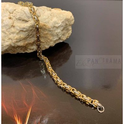A különleges, igényes kidolgozású,ezüst és arany színű szemek váltakozású karkötő tökéletes kiegészítője lehet öltözetünknek.