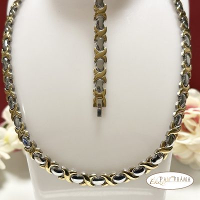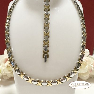 Nemesacél aranyozott díszítésű nyaklánc és karkötő szett.