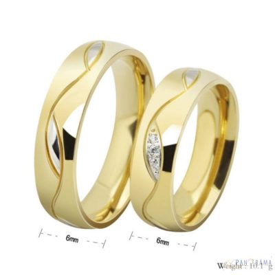 Nemes acél női karikagyűrű arany színű ! Középen hullám metszéssel A női méretben apró kőberakás található az egyik hullám mintában