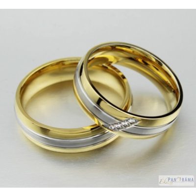 Nemes acél női karika gyűrű széleken arany, középen ezüst színben, álósan 4 pici kristállyal. Önálló gyűrűként is alkalmas.