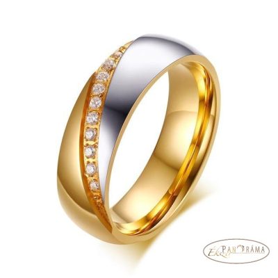 Nemesacél női karikagyűrű, kristályokkal díszített.