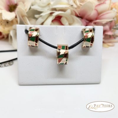 Különleges nemesacél nyaklánc és fülbevaló szett bőrhatású fekete lánccal