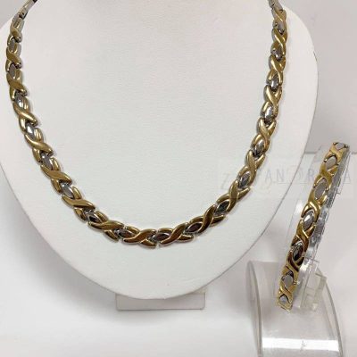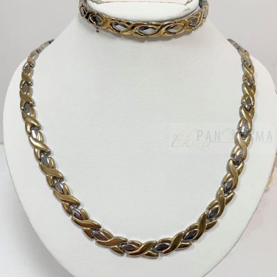 Mérete: a nyaklánc 47 cm hosszú és 8mm széles, a karkötő 20,5cm hosszú és 8 mm széles.