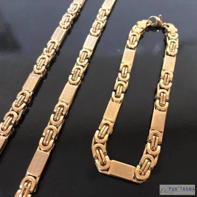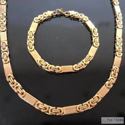 Aranyozott nemesacél nyaklánc és karkötő szett görögös mintával díszítve.