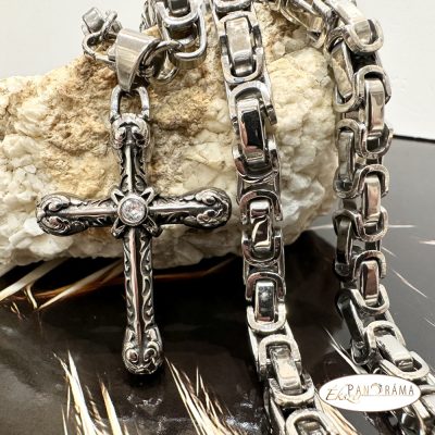 Mutatós lánc, méretetében, stílusában hozzáillő kereszt medállal! Díszdobozban kitűnő választás ajándéknak is!