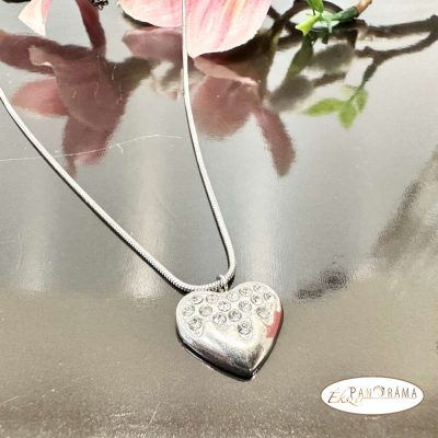 Nemesacél ezüst színű nyaklánc, kristályos szív medállal