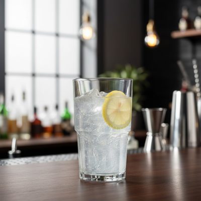 A Gin Fizz klasszikus receptje: gin, citromlé, cukorszirup, szódavíz, és opcionálisan tojásfehérje a habos textúra érdekében. A pohár mérete ideális a frissítő szénsavas italhoz, és elegendő helyet biztosít a jégkockáknak és a díszítésnek, például egy citromkarikának.