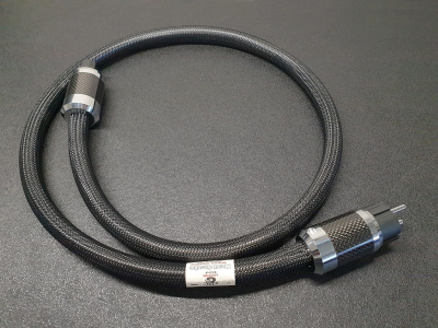 (UPOCC) monokristályos H.R.C vezetők, maximalizált nagy áramú (30A) 6mm2-es keresztmetszet, Cryo Carbon Fiber – Rhodium C13 csatlakozókkal. Tömör-Litze szerkezet biztosítja a flexibilitást a nagy keresztmetszet ellenére is, speciális rezgéscsillapított felépítés.