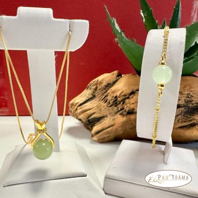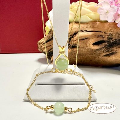 •  Nikkel mentes arany színű szett, nyaklánc karkötővel- Jade