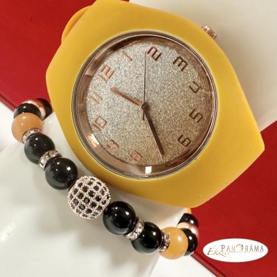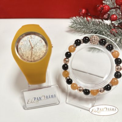 Ajándékcsomag - Szilikon szíjas óra különleges ásvány karkötővel