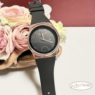 Női karóra kerek arany színű tok, szilikon szíj - Fekete