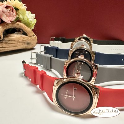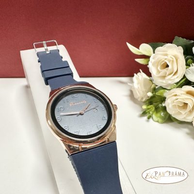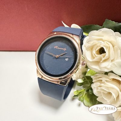 • Női karóra kerek arany színű tok, szilikon szíj - Kék