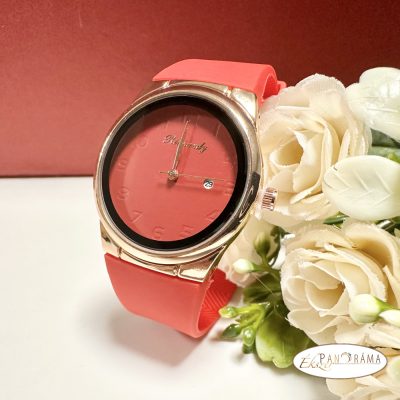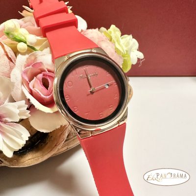 Női karóra kerek arany színű tok, szilikon szíj - Piros