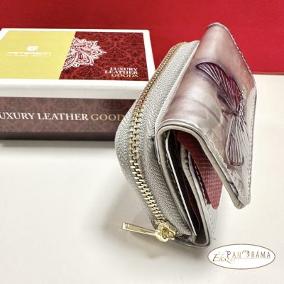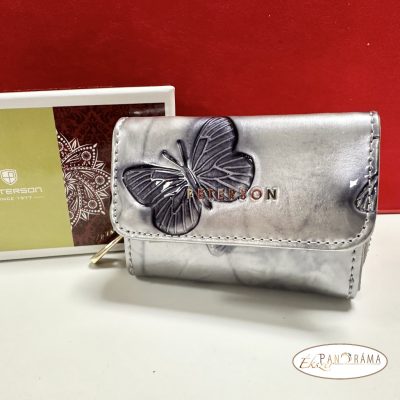 Női valódi bőr pénztárca Rfid védelemmel, ezüst színben, pillangó díszítéssel, díszdobozban- PETERSON MINI