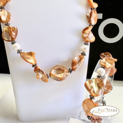 • NYAKLÁNC ÉS KARLÁNC SZETT, KAGYLÓCHIPS, Narancs
