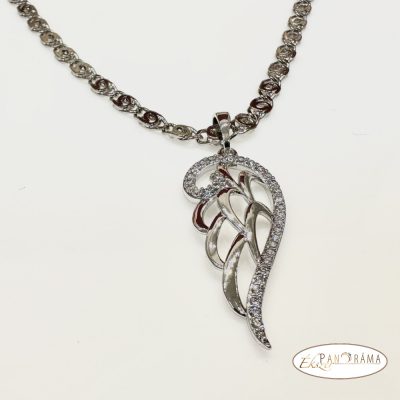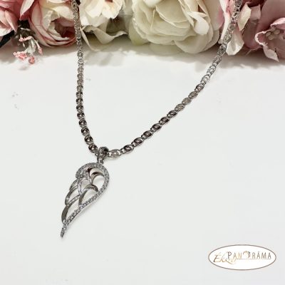 White Gold Filled antiallergén, nikkelmentes nyaklánc, angyalszárny kristállyal díszített medállal.