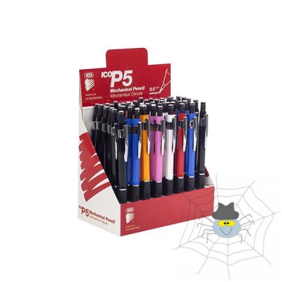 Mechanikus ceruza, 0,5 mm-es, a nyomógomb elforgatásával adagolható beépített radír, fém klipsz. Vidám, élénk színekben.