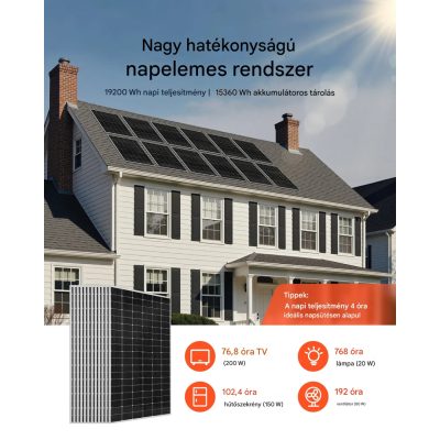 A csomag 12 darab, egyenként 400 W teljesítményű monokristályos napelemet tartalmaz, amelyek összesen 4800 W energiatermelésre képesek.