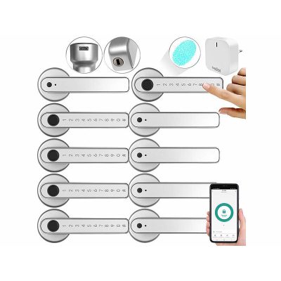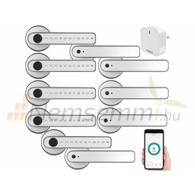 • 5 darabos intelligens biztonsági kilincs-készlet beltéri ajtókhoz: ujjlenyomatos, PIN-kódos és alkalmazással történő nyitáshoz.