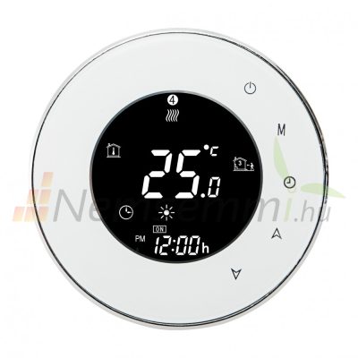 Okos termosztát elektromos fűtéshez távolról irányítható, időzíthető kerek fehér okos termosztát