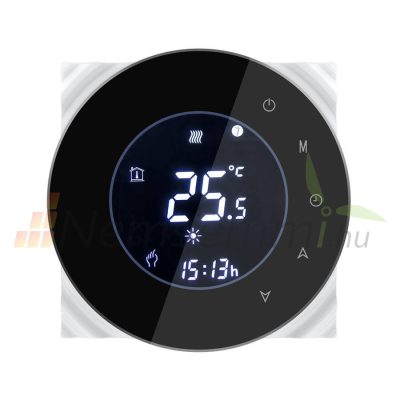 • Okos termosztát gázkazánhoz távolról irányítható, időzíthető kerek fekete okos termosztát