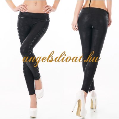 Alakformáló elasztikus fekete elegáns női nadrág,Oldalt műbőr berakás díszíti.95% POLYESTER 5% ELASTHANE