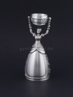 A pohár első részén a menyasszony szoknyája egy viszonylag nagy gravírozható felület, míg a szoknya hátsó része gyönyörű díszes. A két képen a pohár két oldala látható! (eleje és hátulja)