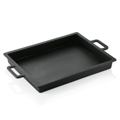 • Sokoldalú felhasználás: Az öntöttvas tepsi sokoldalúan felhasználható. Ideális sültek, rakott ételek, kenyér, pizza és más finomságok sütéséhez.