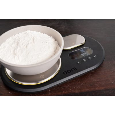 Az Ooni dupla digitális mérlege egyszerűsíti az előkészületeket, így minden alkalommal tökéletes tésztát készíthetsz.