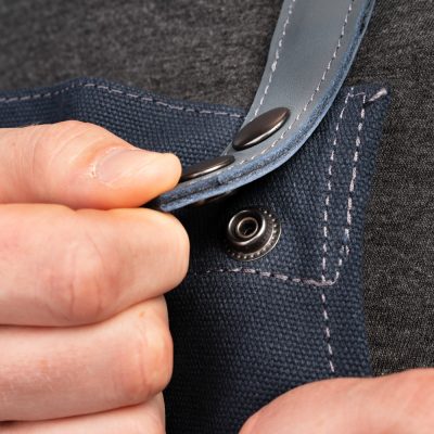 A kötény állítható pántokkal rendelkezik, hogy tökéletesen illeszkedjen, és eltávolítható csatokkal, hogy könnyen tisztítható legyen, ha koszos lesz.