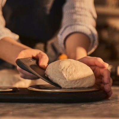 • Ooni könnyű emelő spatula – széles fejével és hosszú nyelével biztonságosan, szakadás nélkül emelheted át a tésztát.