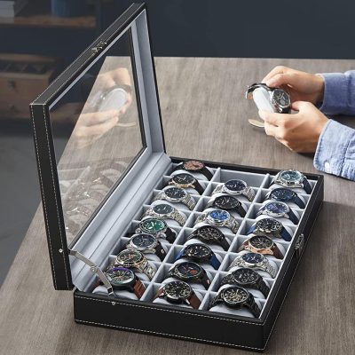 • [Nagy kapacitás] A 24 nyílással büszkélkedő óradoboz rengeteg tárhelyet kínál óráinak, akár 48 mm-es kijelzővel.