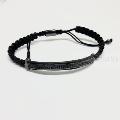 Órakísérő csomózott karkötő fekete acél betét díszítéssel.